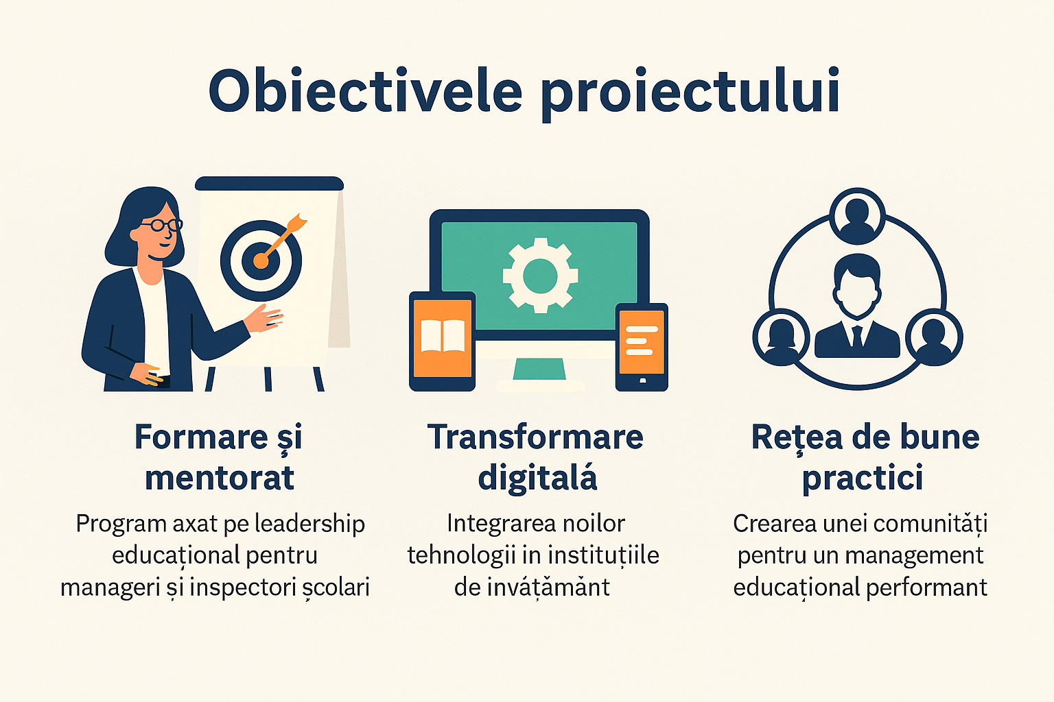 Acești beneficiari vor participa la activități de formare profesională și mentorat în domeniul leadershipului educațional, cu scopul de a consolida un management performant, adaptat cerințelor actuale ale sistemului de educație. De asemenea, ei vor fi implicați în inițiative de transformare digitală și integrare a bunelor practici în activitatea managerială din școli și inspectorate.